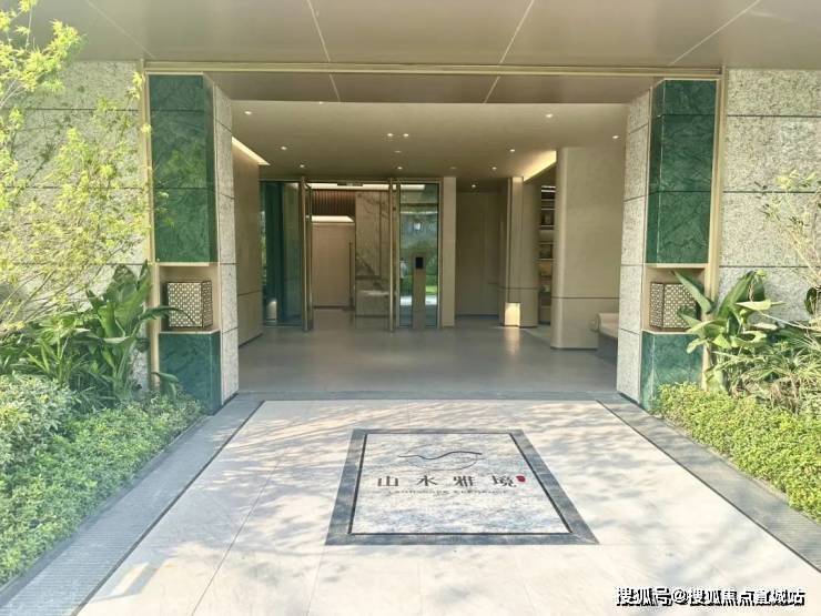 酒店式入户大堂通过石材、香槟金铝板和绿色奢石打造 ,也是精致有格调!