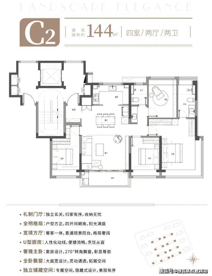 相比约100㎡户型, 约144㎡为洋房户型,得房率约79%,独立入户花园,进门独立玄关收纳,入户仪式感up!
