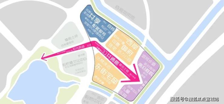 据悉社区由自持住宅、可售住宅、社区配套三大功能组合而成,北区为公区自持配套区,中区为住宅社区,南区为住宅社区及配套。