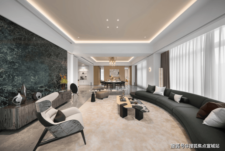 梁志天&上海世尊共同执笔:410㎡湾潮户型:WSD上海世尊团队执笔,以独一无二的“摩登东方”设计语言,抽象提取东方写意精神,与复古摩登、自由艺术平衡相融,领潮钱湾黄金时代。