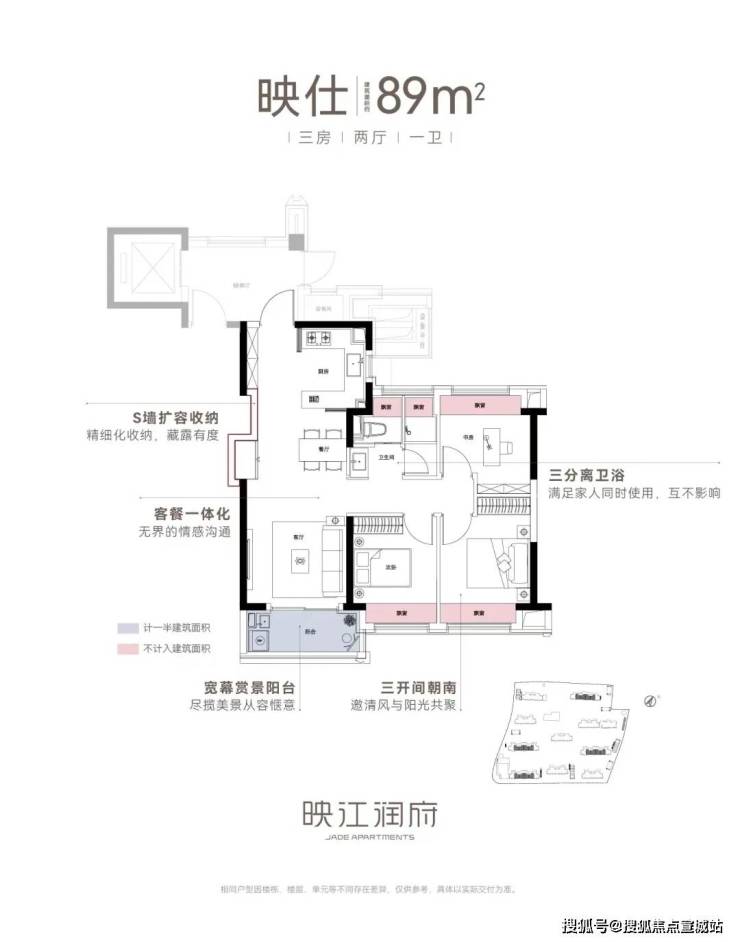 亮点二:高效扩容的收纳,扩充家的容积。小户型的痛点在于,随着家庭人口机构的变化和居住年限拉长带来的收纳难题,映江润府贴心打造玄关系统、餐厨系统、卫浴系统、休憩系统、灵动系统等六大收纳系统,不止关注家的面积,更关注家的容积。
