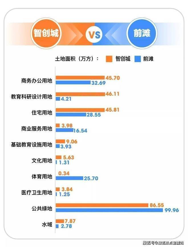 当然,很多人对这个体量不太有概念,我们以熟悉的前滩为标杆,来看一下智创城的整体配套体量,在上海占据怎样的位置: