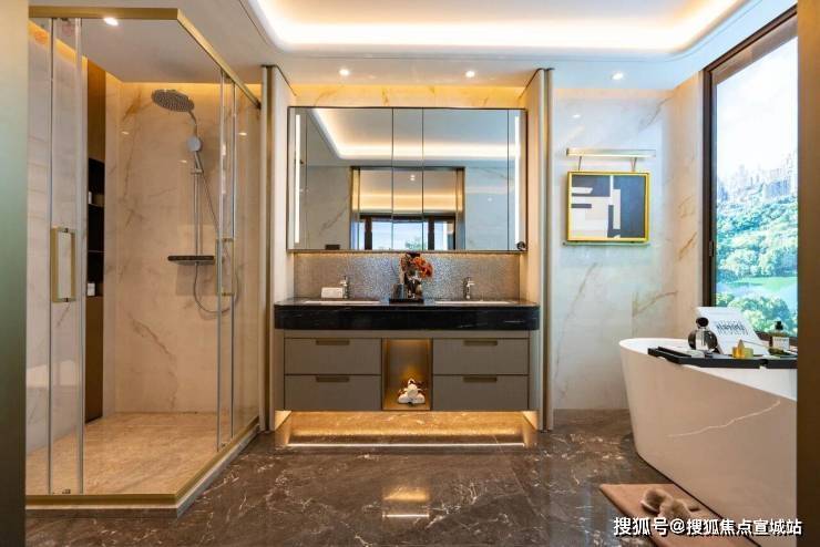 主卧是豪华套房设计,配备独立步入式衣帽间、双台盆卫生间、淋浴区 + 浴缸双沐浴方式,实用性与豪华兼备。270° 转角飘窗设计,引入更多阳光和美景,让主人私享静谧与舒适。