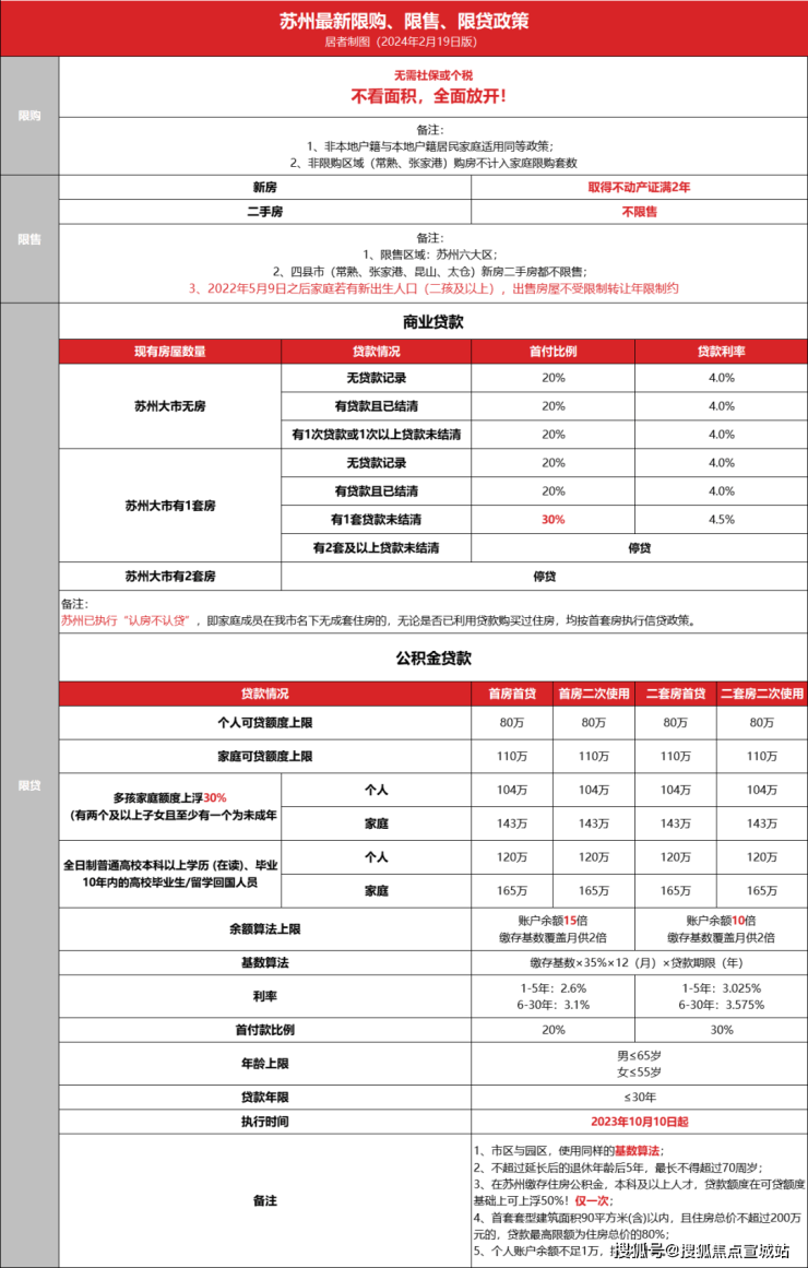 ①苏州无房无贷:首付2成,利率4.0%;