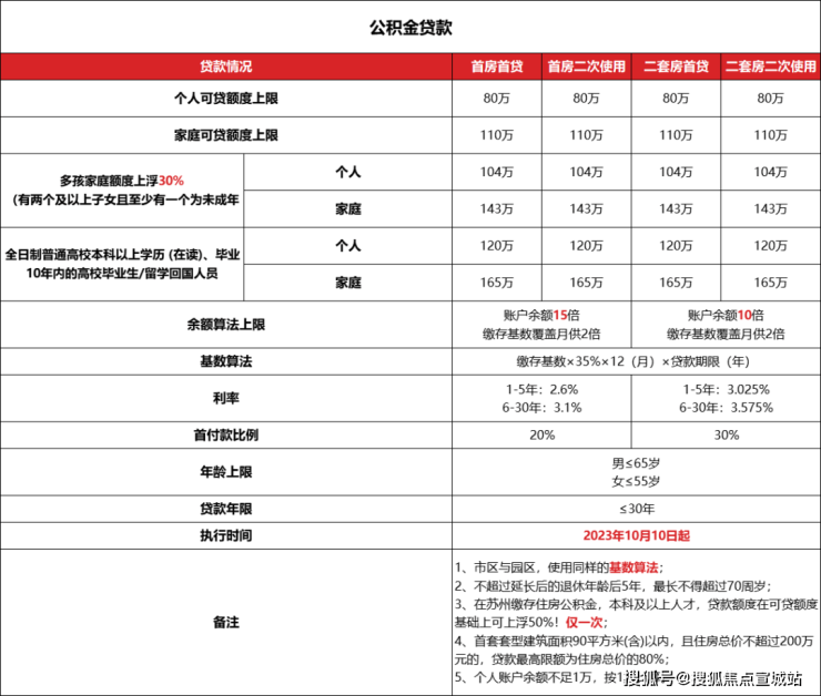 ④苏州支持异地公积金使用,按照余额算法来贷款。个人最高可贷80万,家庭最高可贷110万,见表格。
