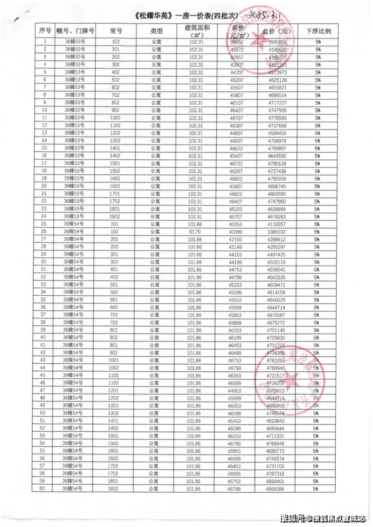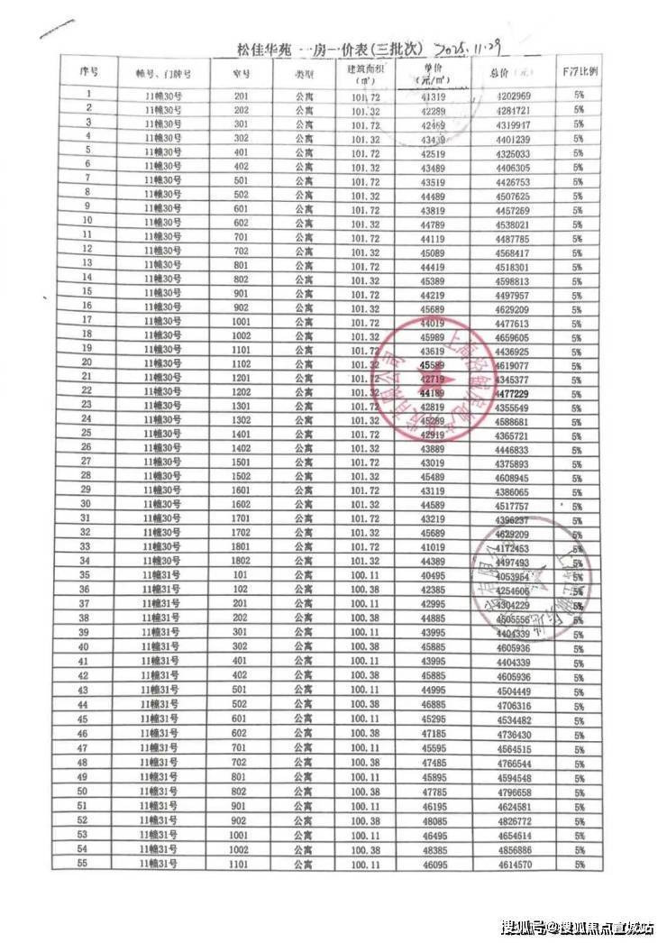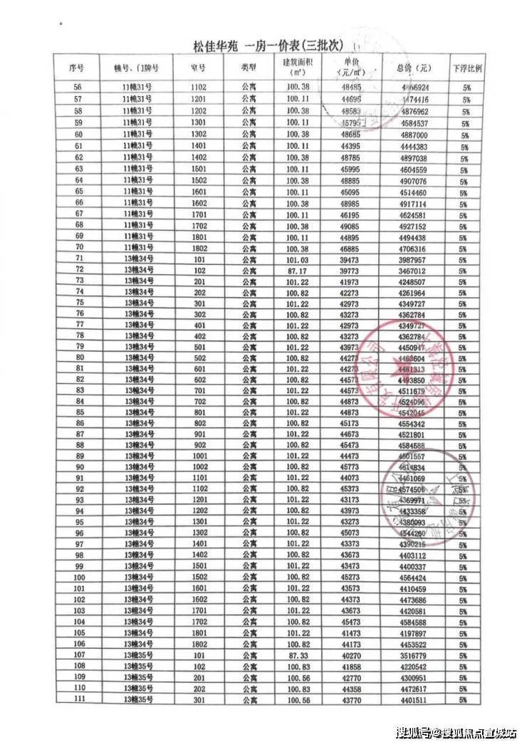 前期房源一房一价表: