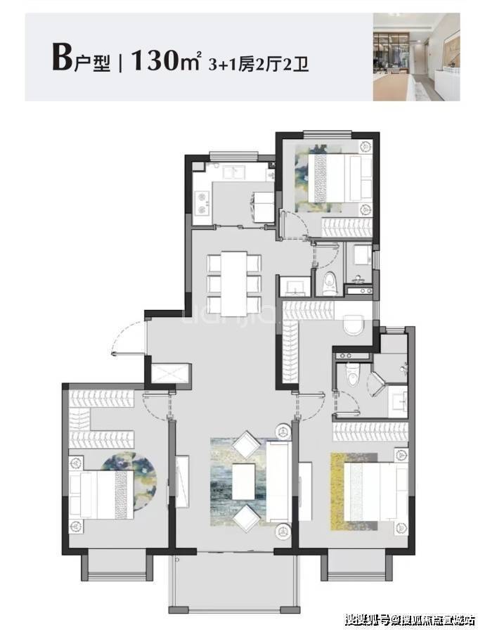 126-128㎡三居室:均价约2.6万/㎡,总价328万起