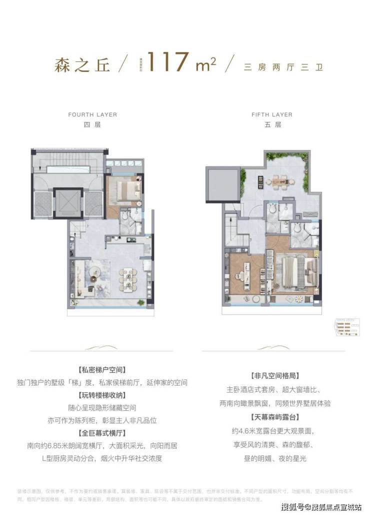 除了叠墅外,全社区仅4幢建面约101㎡沐光全景小高层,通过前瞻排布,几乎做到了户户景观无遮挡。