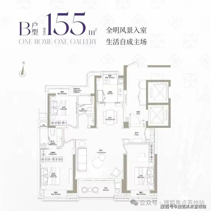 近全飘窗设计,扩展了生活的尺度感;主卧豪华套房设计,兼顾私密性与居住舒适度!