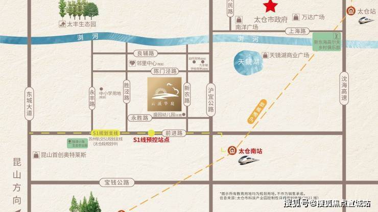 直线距离太仓南站约4公里(沪通高铁已通车,30分钟直达上海虹桥)
