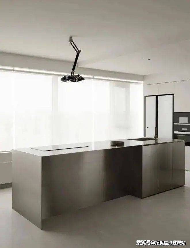 四白落地的墙面,浅灰色混凝土地坪和无主灯设计,让空间更加简洁干净的同时,也为屋主希望‘家’和‘画廊’空间的结合成为可能。