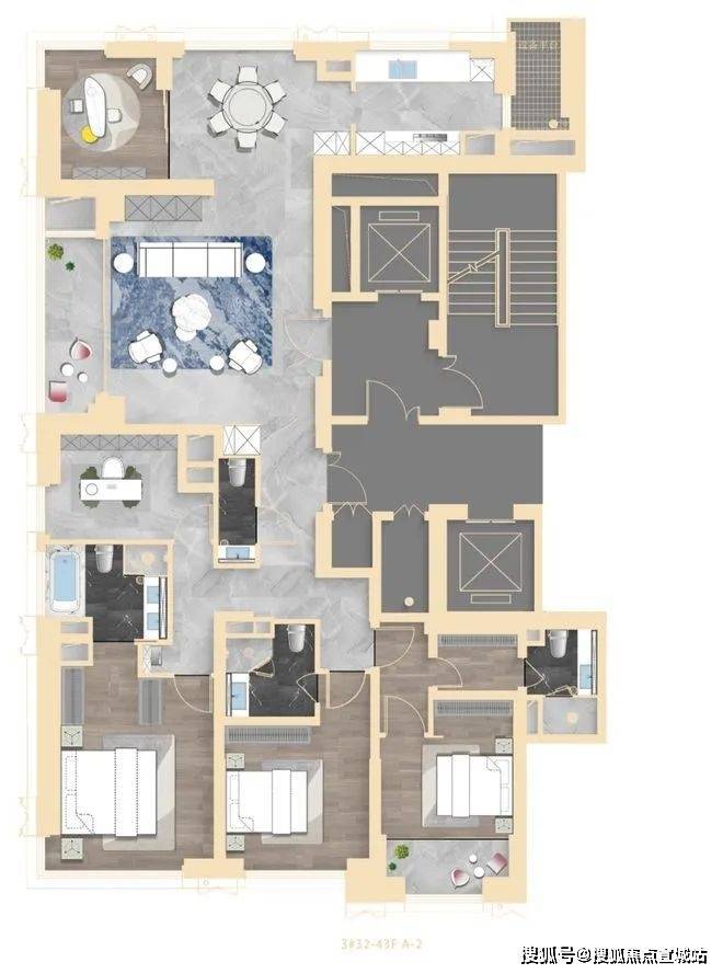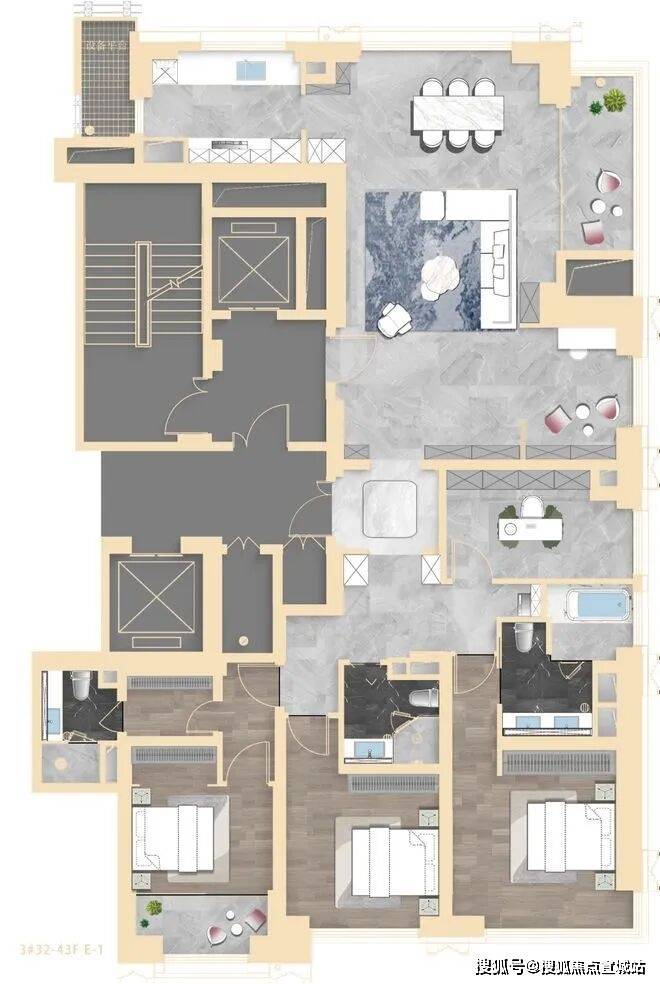 4#楼王总高16层,均为大户型产品,圈层更纯净!主力建面约193-302㎡,户型图如下: