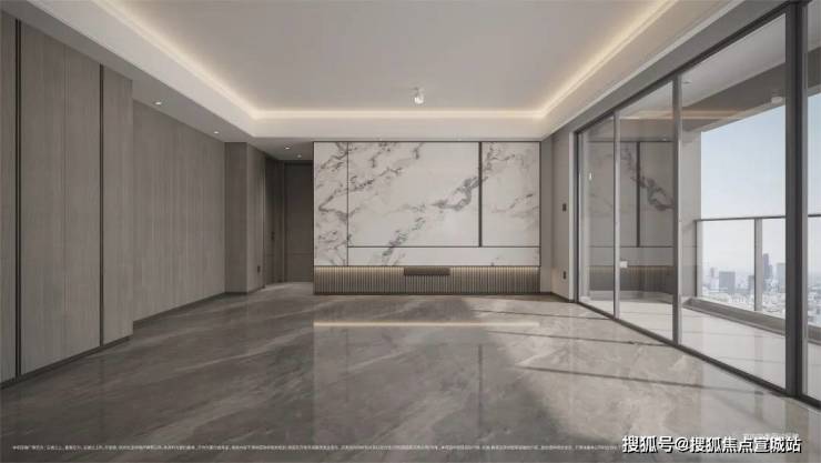 约12.6米南向大面宽,延展约6.4米双联阳台、主次卧双飘窗,每一个空间都将窗墙比做到极致;