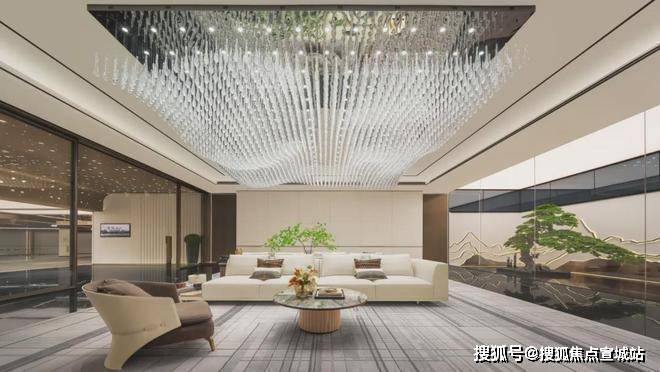 建筑设计:建筑取义“凌云松”,采用流线型现代立面,外立面选用香槟金铝板与水晶蓝灰玻璃相结合。创新围合式布局,通过百米艺术长廊将四幢凌云高层建筑围合形成中心静谧花园,建筑层层退台,最大露面积可达约700平方米。