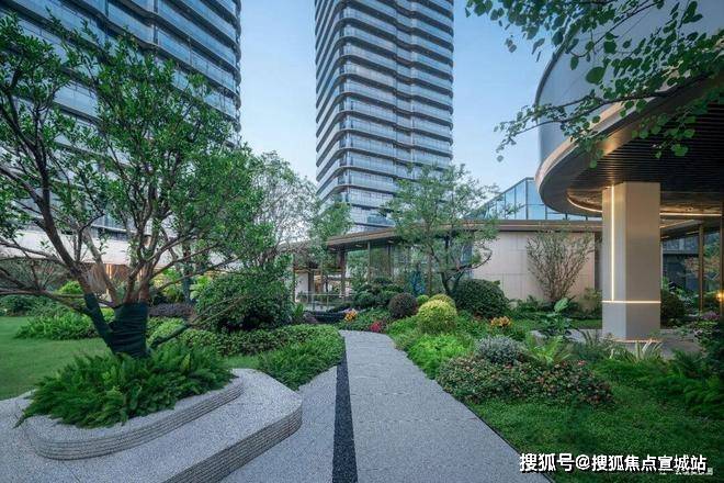 园林景观:以“莫比乌斯环”为灵感,打造超350米风雨连廊,串联星月草坪、下沉水景等景观,南侧直面江一公园、北塘河公园和北塘河儿童公园,形成“一江一河三公园”的生态景观体系。