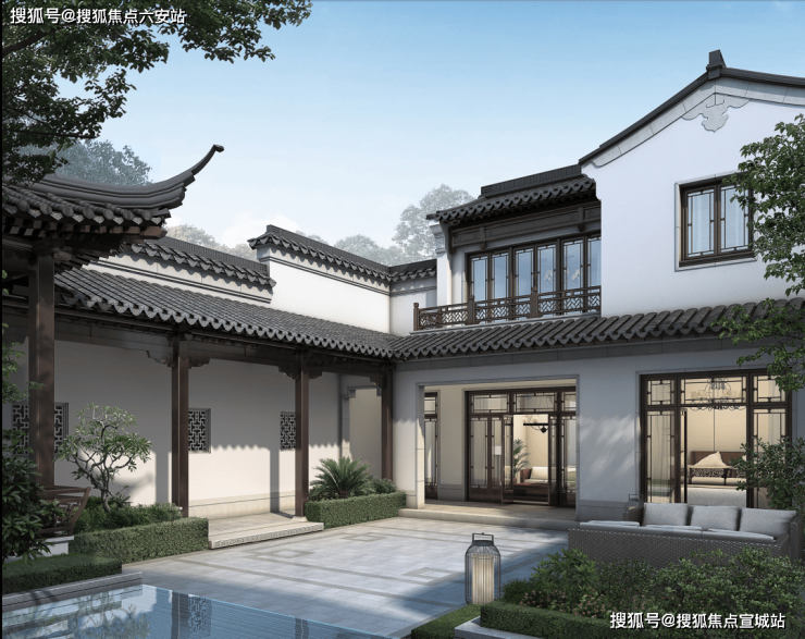 建筑融合苏式园林设计,采用白墙黛瓦、飞檐等传统元素,每户窗棂纹路定制化13