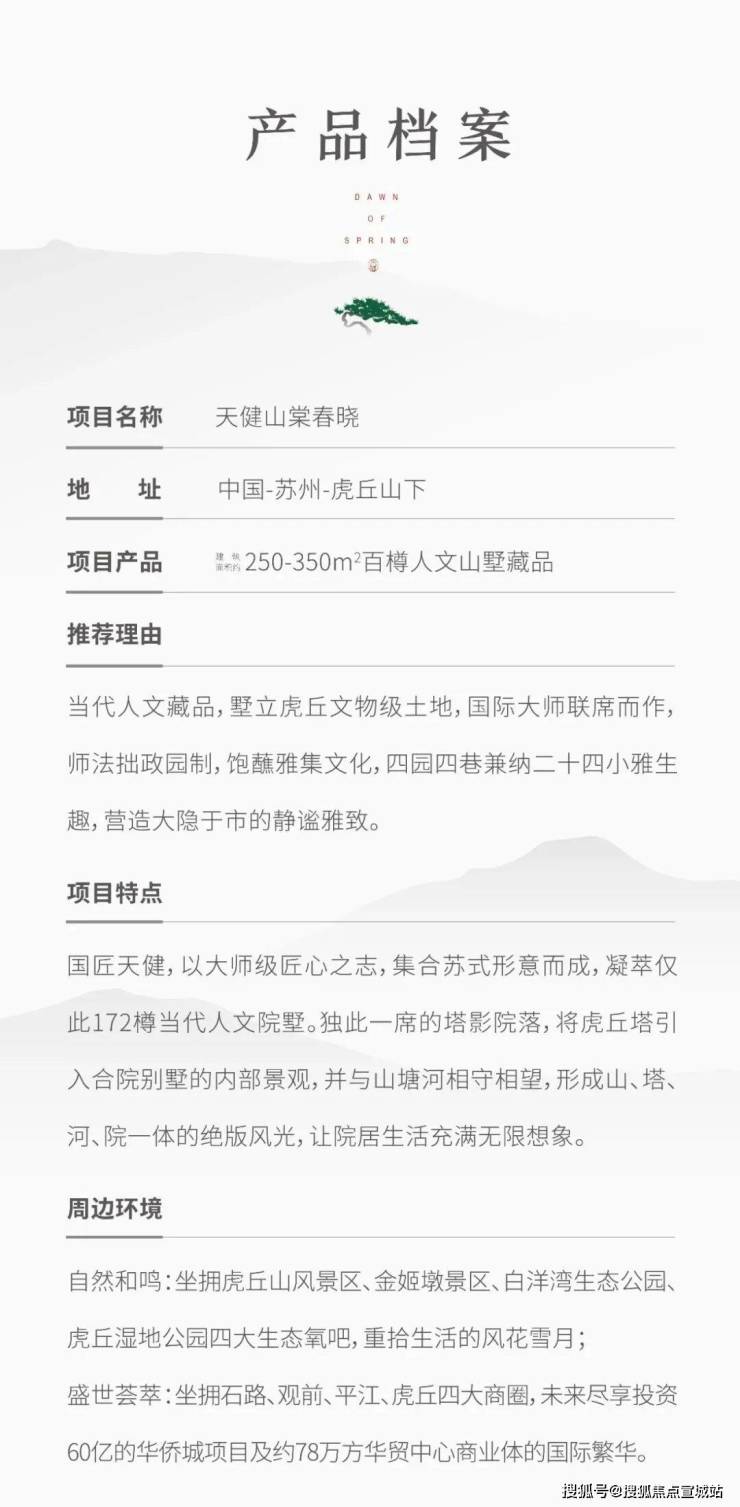 天健·山棠春晓,一座真正的居于虎丘山下的别墅,仅172樽的珍品建筑,他们将与古老的塔尖风景沟通,也将与始自春秋的故事交融,更将唤醒沉浸于诗词歌赋中的虎丘,创造属于苏州的当代印记。