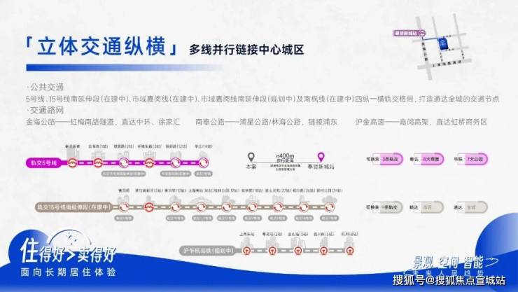 交通配套:紧邻地铁 5 号线奉贤新城站,直线距离约 300 米,未来 15 号线南延伸段(在建中)将与 5 号线交汇。周边有金海公路 - 虹梅南路隧道、南奉公路 - 浦星公路 / 林海公路等主干道。