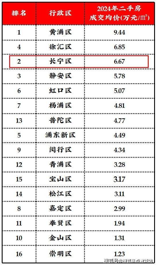 和徐汇滨江、杨浦滨江甚至是黄浦静安相比,长宁的新房供应真的是太“克制”了,所以,2024年长宁区二手成交均价(约6.67w)超过了静安(约5.78W),仅次于黄浦徐汇全市第三。