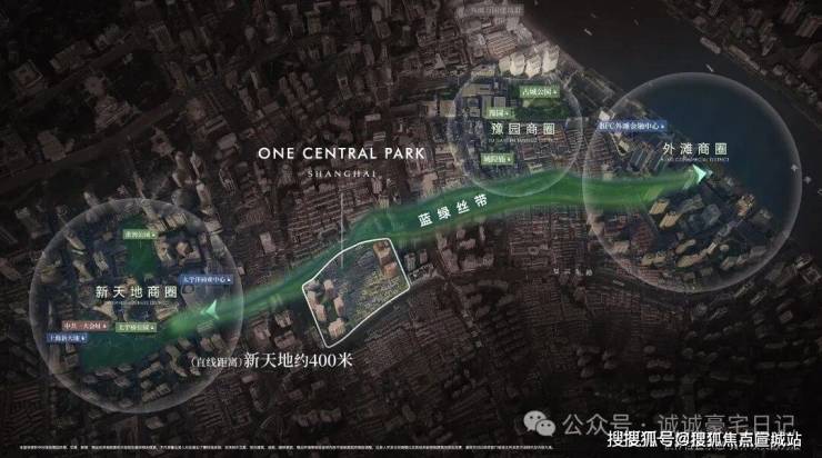 距离新天地直线距离约400米,作为蓝绿丝带规划上的关键节点,随着大新天地东进南拓战略逐步实施,通过水景、绿地和公共空间,串联新天地、豫园、外滩三大世界级商业版图。