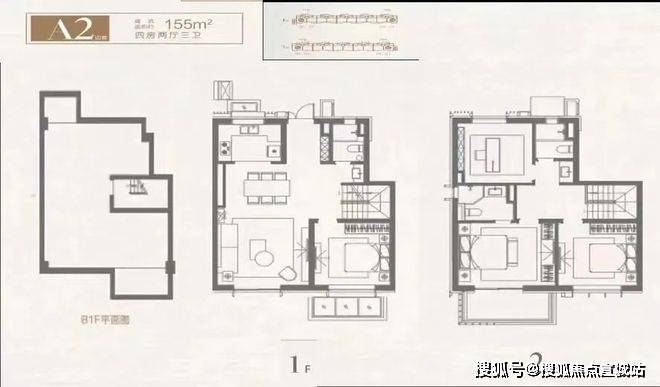 在售155m²叠墅户型图赏鉴(下叠)