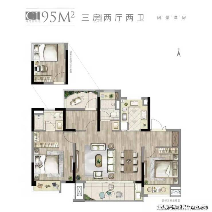 在售户型:高层户型面积为 78-95㎡,主要是三居室;洋房户型面积为 95-115㎡,有三居室和四居室。