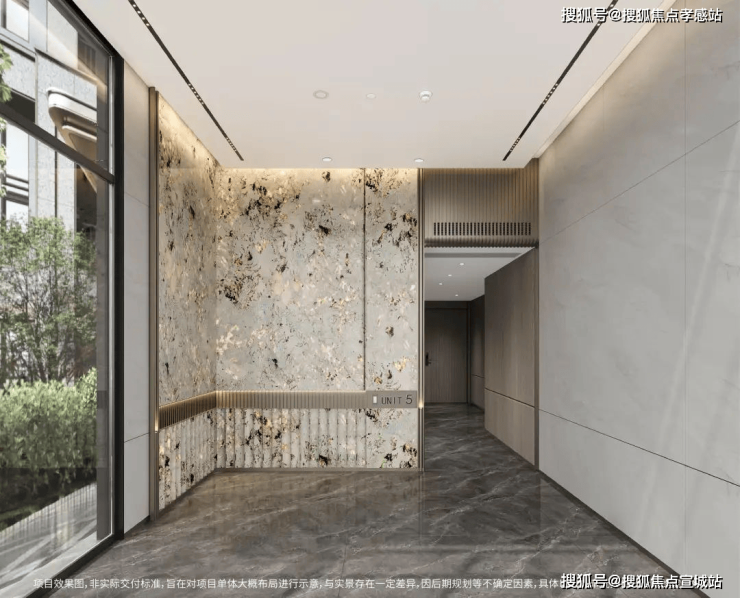 精选雪山银狐天然透光石材,采用高难度的弧形设计与金属格栅腰线相结合。定制的地下入户大堂,延续首层入户大堂的高标准材质,选用雪山银狐天然透光石材,营造出奢华的生活质感。优雅的艺术地库空间,古铜色金属与水波纹玻璃的质感搭配,构建出璀璨的星空穹顶,模拟自然光线随时间变化的动态效果,光洁明亮的水磨石车道,精心雕琢出格调十足的归家之路。