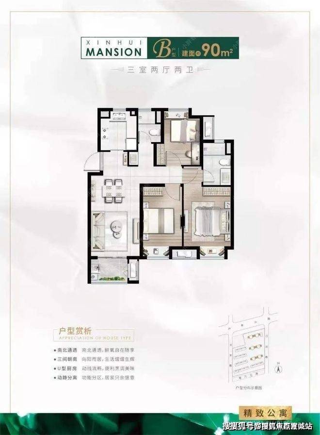 建面约94㎡3房2厅2卫户型特点:做到了三开间朝南+主卧套房设计+全卧飘窗+动静分离+卫生间干湿分离,同润新云都会售楼处电话:400-8386-958(一对一热情服务)功能性与空间感完美结合的3房“神户型”。