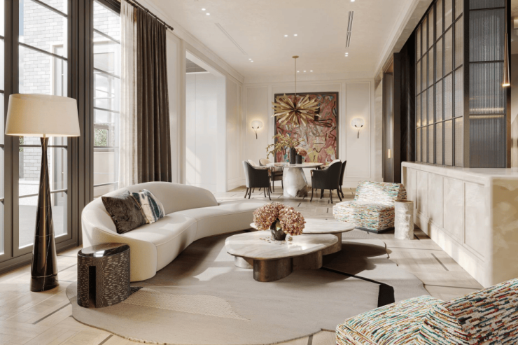 突破风貌别墅立面限制,打造超大采光面:很多风貌别墅的窗户是“硬伤”,因为出于保护要求会限制窗户的设计,很多项目复刻当年的建筑,采用了“高窗”,一定程度上影响了采光。