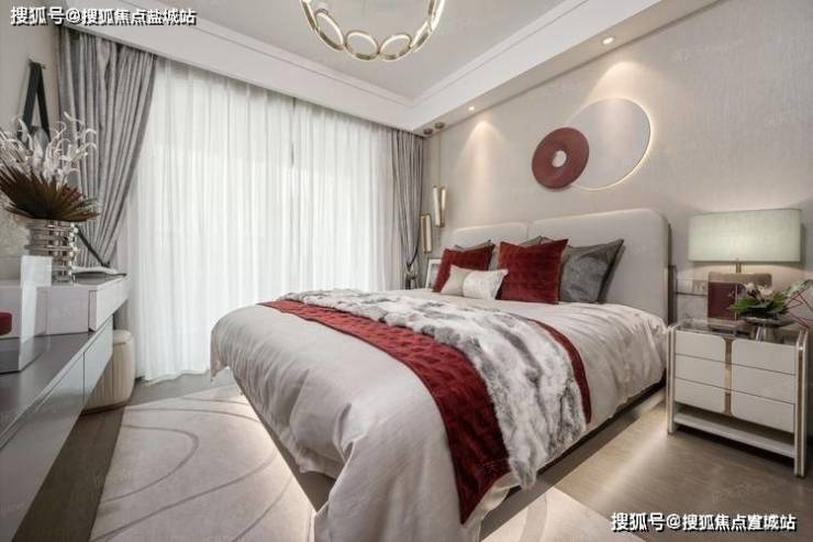穿过归家大堂,中庭水院在眼前华丽打开。岸边定制石榴雕塑、珍贵树种、水中艺术景观……而一池安静平和的水波,则负责将视觉带来的冲击放缓。到了夜晚月光倾洒,池底奢石呈现“镜池邀月”奇观,池中红玉莹莹闪烁,与月辉相映成趣,形成极具度假松弛感的中心游览场域。