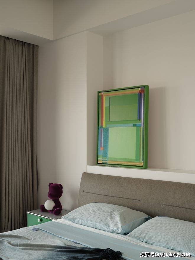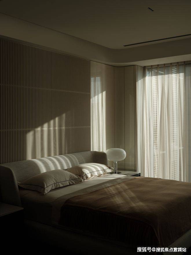 静安翡丽铂悦官方电话➡:400-8851-337(预约看房电话)简单的设计不因摒弃浮华的装饰而失色,清晰分明的弧形线条与极少的家居陈列在主卧套间内不由得被放大了细节。床头背景墙的竖纹与玄关、客厅墙面遥相呼应,美式元素在细节中巧妙展现。
