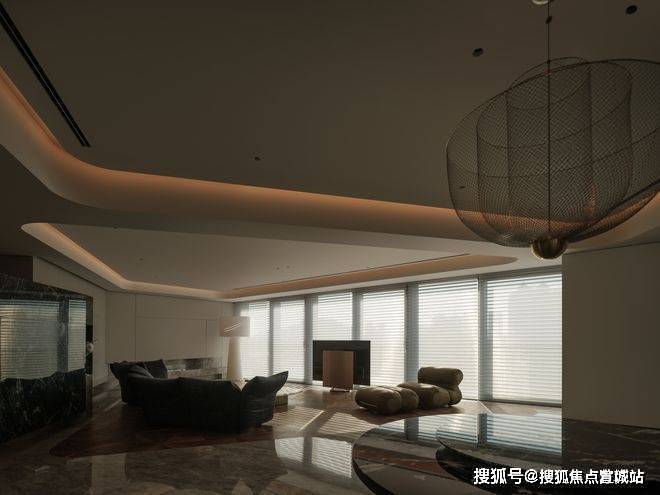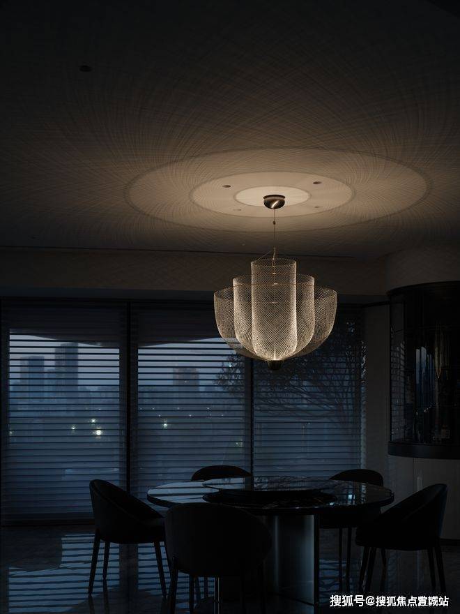 静安翡丽铂悦官方电话➡:400-8851-337(预约看房电话)借以Moooi的枝形吊灯向整个开放区域投放出细腻的美感,即便是金属质地却丝毫没有硬朗的质感,光线通过铁丝网散射,营造出温馨而梦幻的氛围。