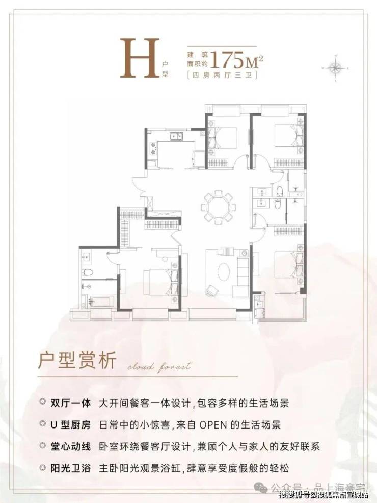 建面约175㎡4房3卫,几乎是上海改善的终点户型。四开间朝南,采光、视野以及通风都极为优秀。主卧超豪华套房,带步入式衣帽间、带可配备浴缸的超豪华卫浴,舒适度惊人。