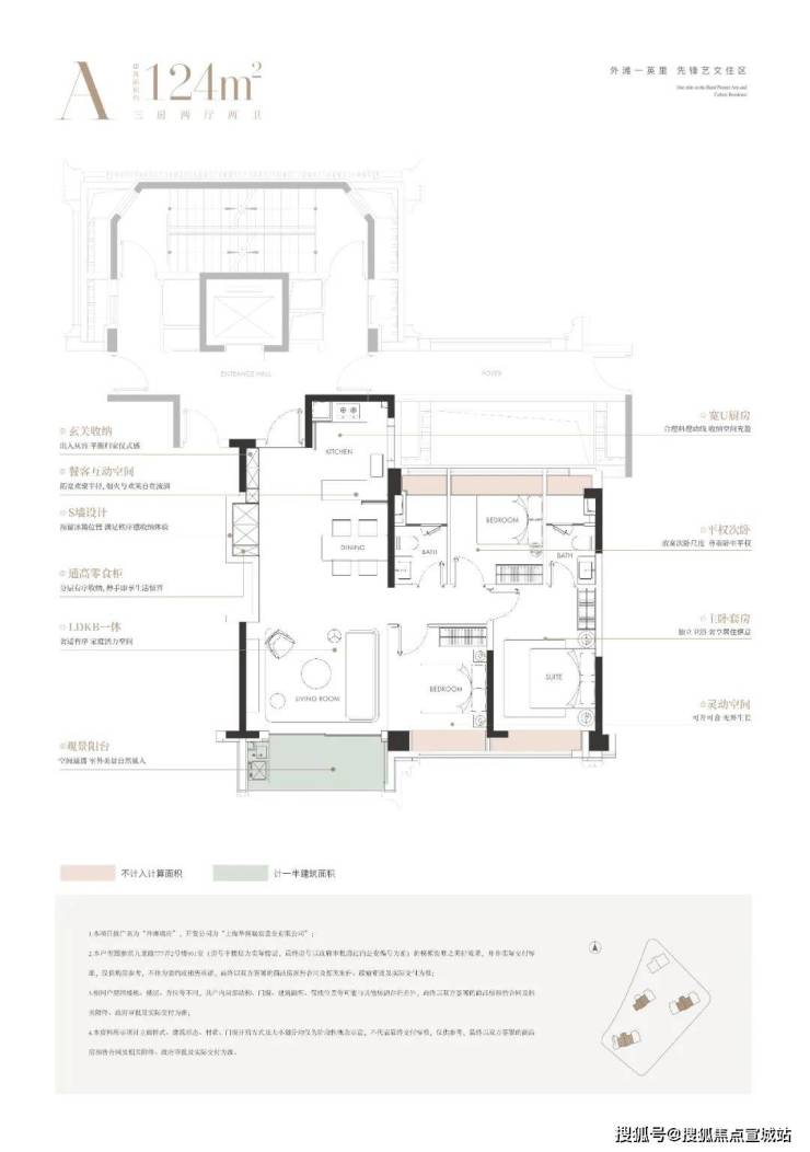 建面约120㎡三房两厅两卫(总价约2000万起)