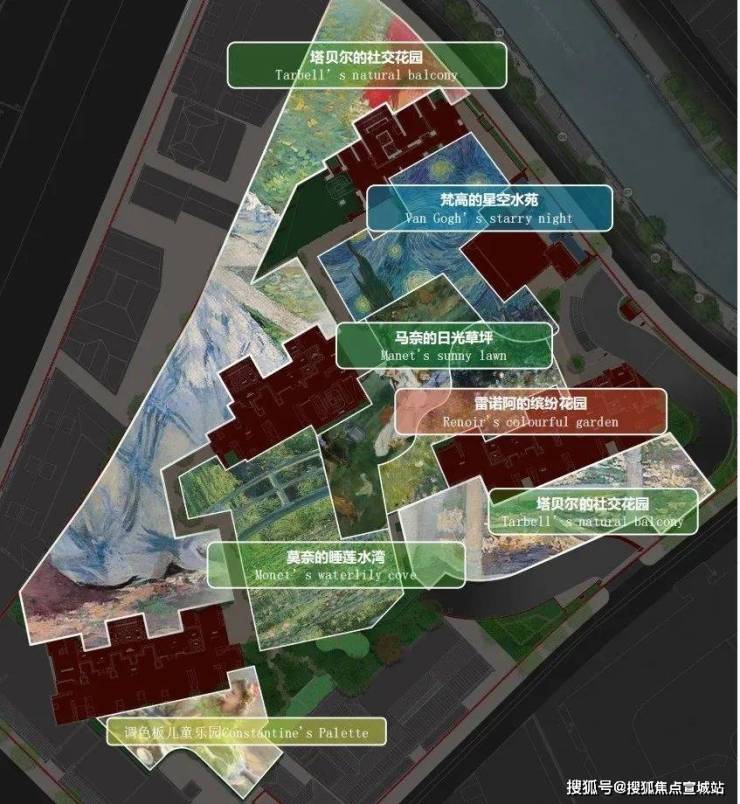 让人眼前一亮的是,景观设计更以印象派艺术史诗为灵感,独创六大主题花园,将传世名作解构为可游可赏的立体生态空间!有梵高的星空水苑、莫奈的睡莲水湾、马奈的日光草坪、塔贝尔的社交花园、雷阿诺的缤纷花园以及调色板儿童乐园……