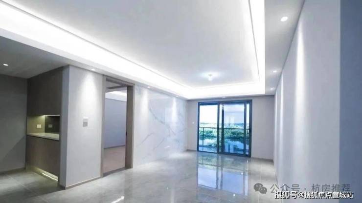 墙面区别于常规项目的乳胶漆,以墙布升级了精装交付标准。吊顶运用了石膏板造型,并且在客厅的电视背景墙位置采用了岩板材质,未来软装搭配轻奢、港式、现代、新中式风格,颜值都十分在线。