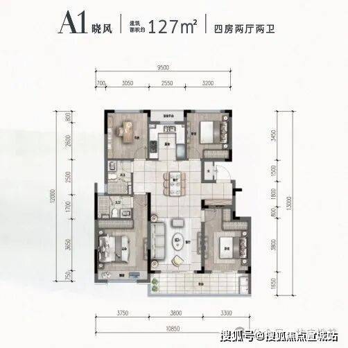 【A1晓风户型】127m,4室2厅2卫,南、北朝向,户型价格【310万/套】这样