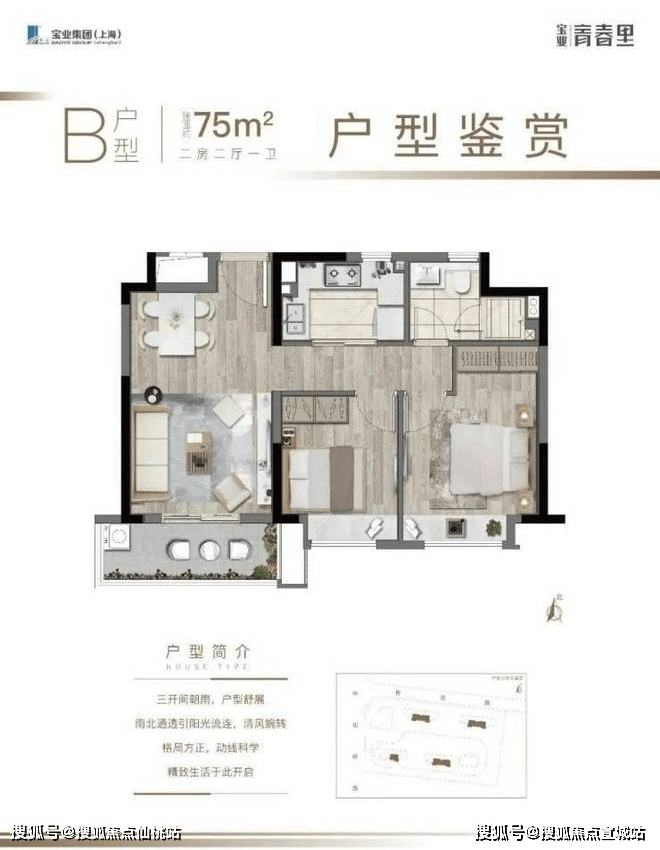 建面约75㎡2房2厅1卫,功能间分布合理,总价仅约208万起,这是一个做到极致的刚需上车户型,整个上海都不多见了。