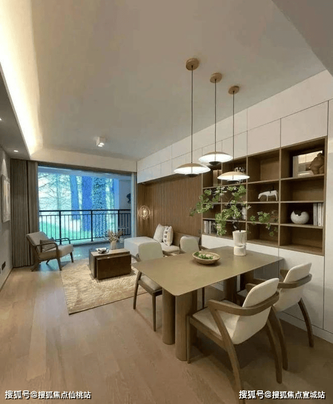 客餐厅相对独立,做到南北通透,客厅和次卧连接阳台,客厅南连宽景阳台,室内空间有非常好的延展性。