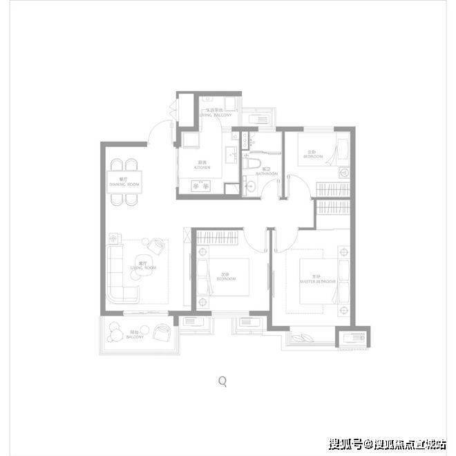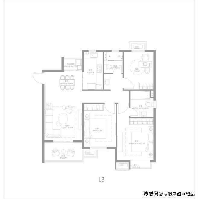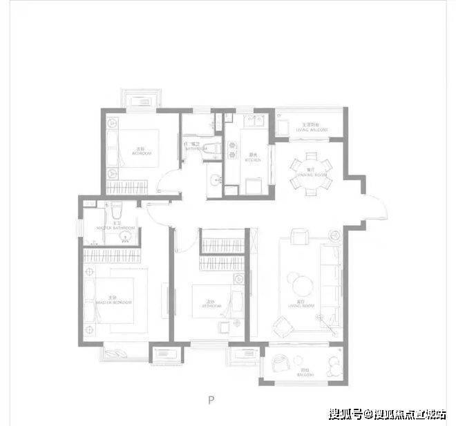 建面约116㎡三房两厅两卫,南北通透,户型方正,主卧大套房,带阳台与独立主卫,更舒适的居住尺度。