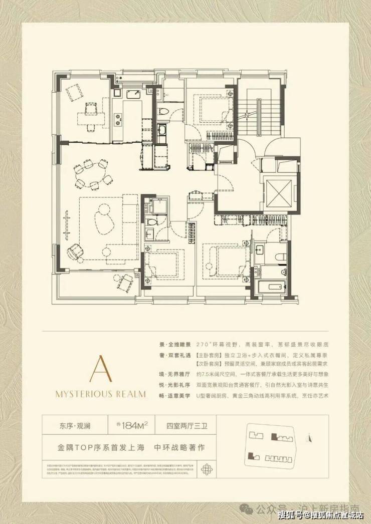 黄金战略区位:金隅·公园东序位于整体规划约437万的桃浦科创城,是上海中环旁四大科创板块之一,也是上海"十四五"重点规划的科创承载区。远超前滩CBD的体量和能级,其中约113万方智创TOP产城综合体,目前已汇聚东方雨虹、德爱威(中国)华东总部、李园实业、乐凯新材料等超200+高新技术企业落地,各类知识产权近1000项,启程全球科技创新中心的新一极,意味着您将置身于城市发展的潮头。稀缺景观:金隅·公园东序最大的亮点是直面约百万方的桃浦中央公园。特别是184㎡的‘全景舱’户型,设计了270度的环幕窗景,相当于每天醒来,整个中央公园都成了您家的私人背景墙。" 这种资源在寸土寸金的中环区域是绝无仅有的。