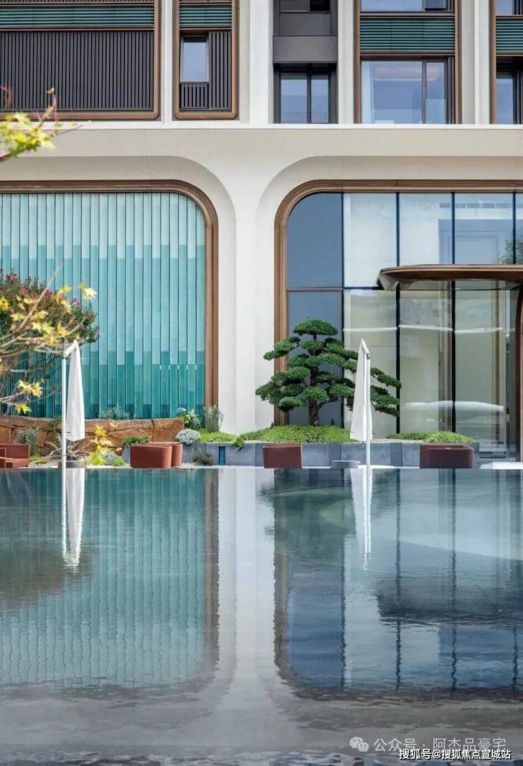 九艺落位,门前皆景:从入口的石艺,到最后一个庭院的泉艺,中建玖上琅宸每一栋楼的门前,都有对应定制的设计主题。
