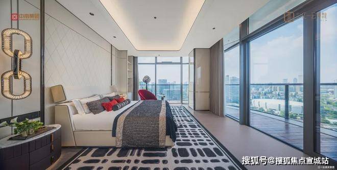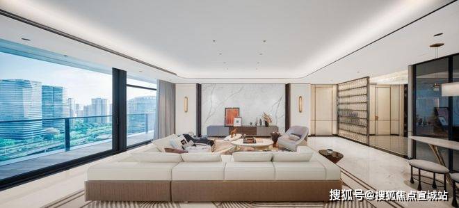 通过两次U型转弯,超大阳台以270°环绕起整个房间,每个卧室都能直通阳台,室内外的空气和风景无缝交融。在客厅和阳台的衔接处,还大手笔地配置了两扇全落地电动提升推拉门,价格相当于一辆特斯拉ModelY汽车。