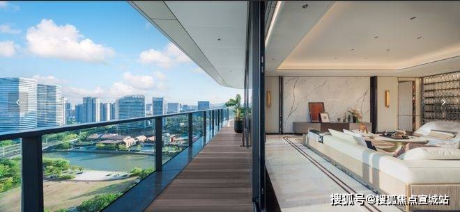 电动提升推拉门缓缓打开,1.8m宽100m长的跑道大阳台豁然眼前,每个房间都带阳台,毫无遮挡,望着楼下的公园河景,风是自由的,你也是。
