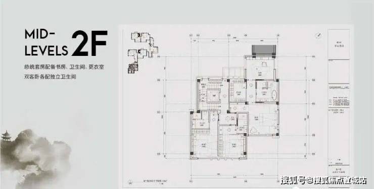二层近12M开间可自由设置,每间4M的南向尺度,舒适的套间组合