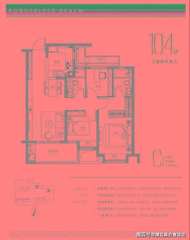 保利光合跃城售楼处电话/地址:400-5805-956【预约☎】建面约104m²户型特点:LDKB洄游式竖厅+开放式厨房,生活尺度无限拉伸,主卧近6m²灵感空间,承载更多功能可能,成长型的次卧,书房儿童房随心所欲。