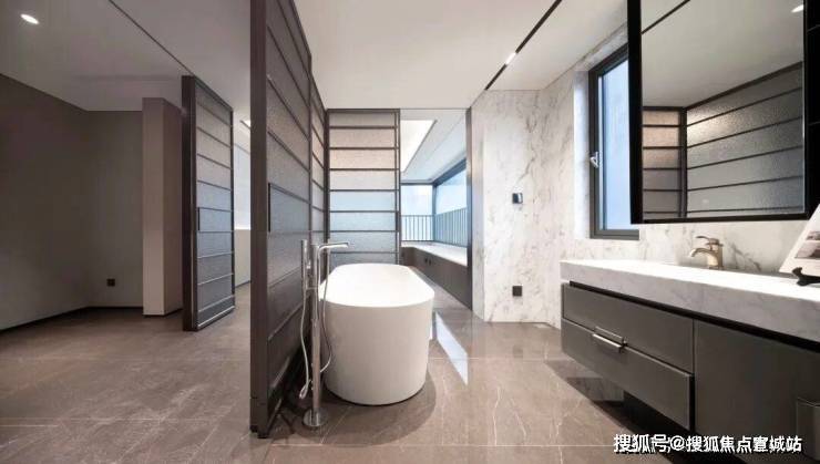 主卫不同于以往,采用了 三分离的设计 ,另外还带有浴缸、双台盆,并且有完整的洄游动线,洗完澡后可以直接推开南面的移门。