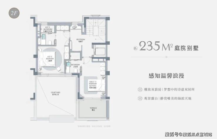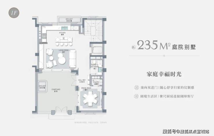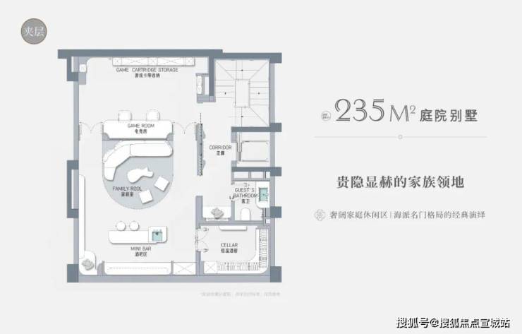 以建面约235㎡的庭院别墅样板房为例,户型附赠地下室、庭院、露台、阁楼空间,附赠面积达到户型总建面的60%左右,市场上少之又少!