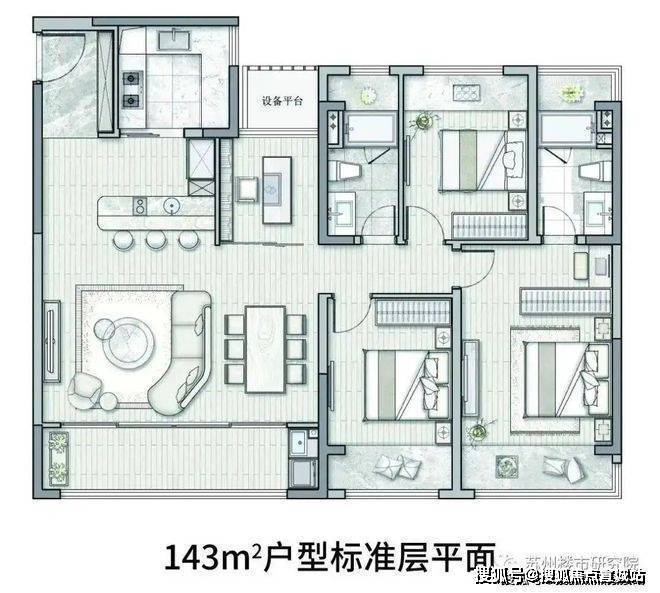 01建面约143㎡四房生活理想家,跃级改善的至优之选