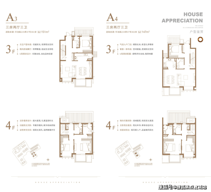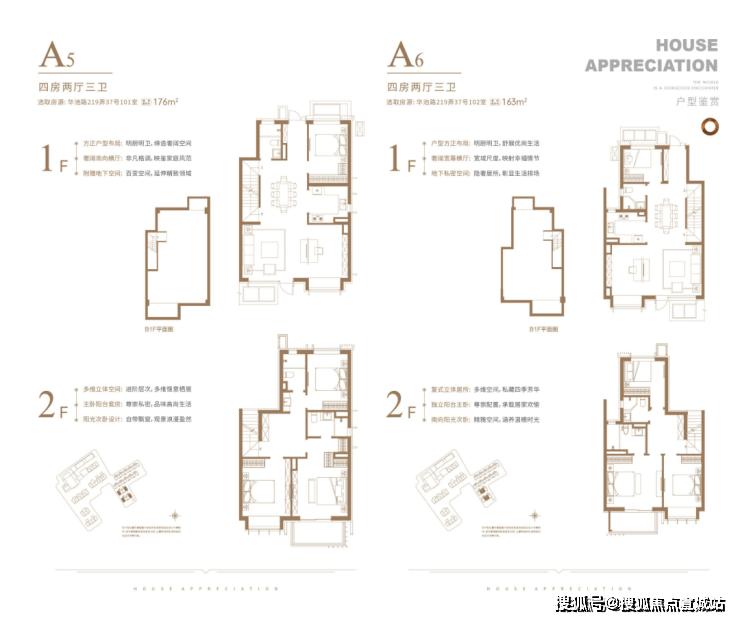 下叠户型,共有三个主力户型,建面约155、163、176㎡下叠。